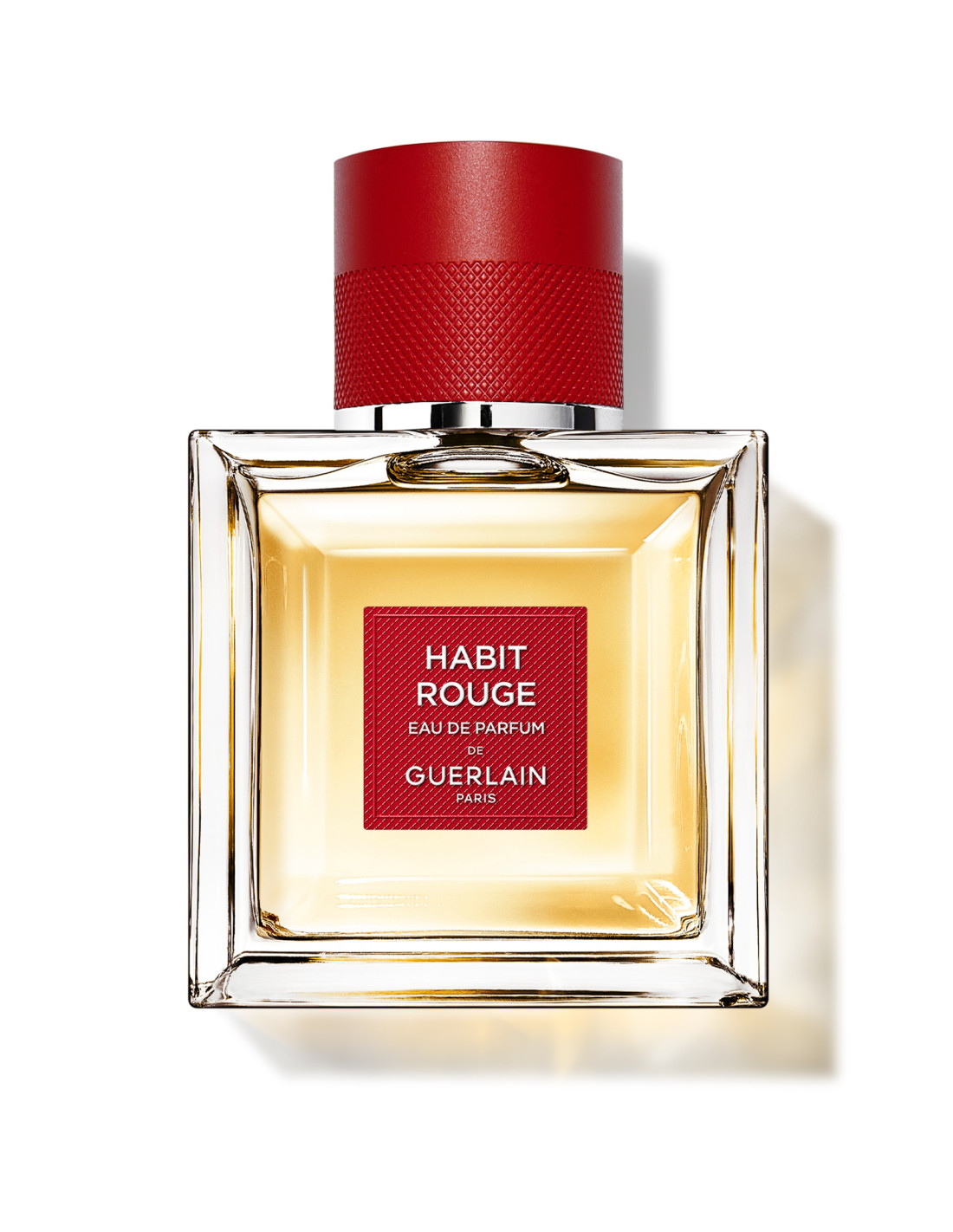 Oriental Boisé, Habit Rouge Eau de Parfum révèle la signature intense et sensuelle des notes boisées et cuirées.